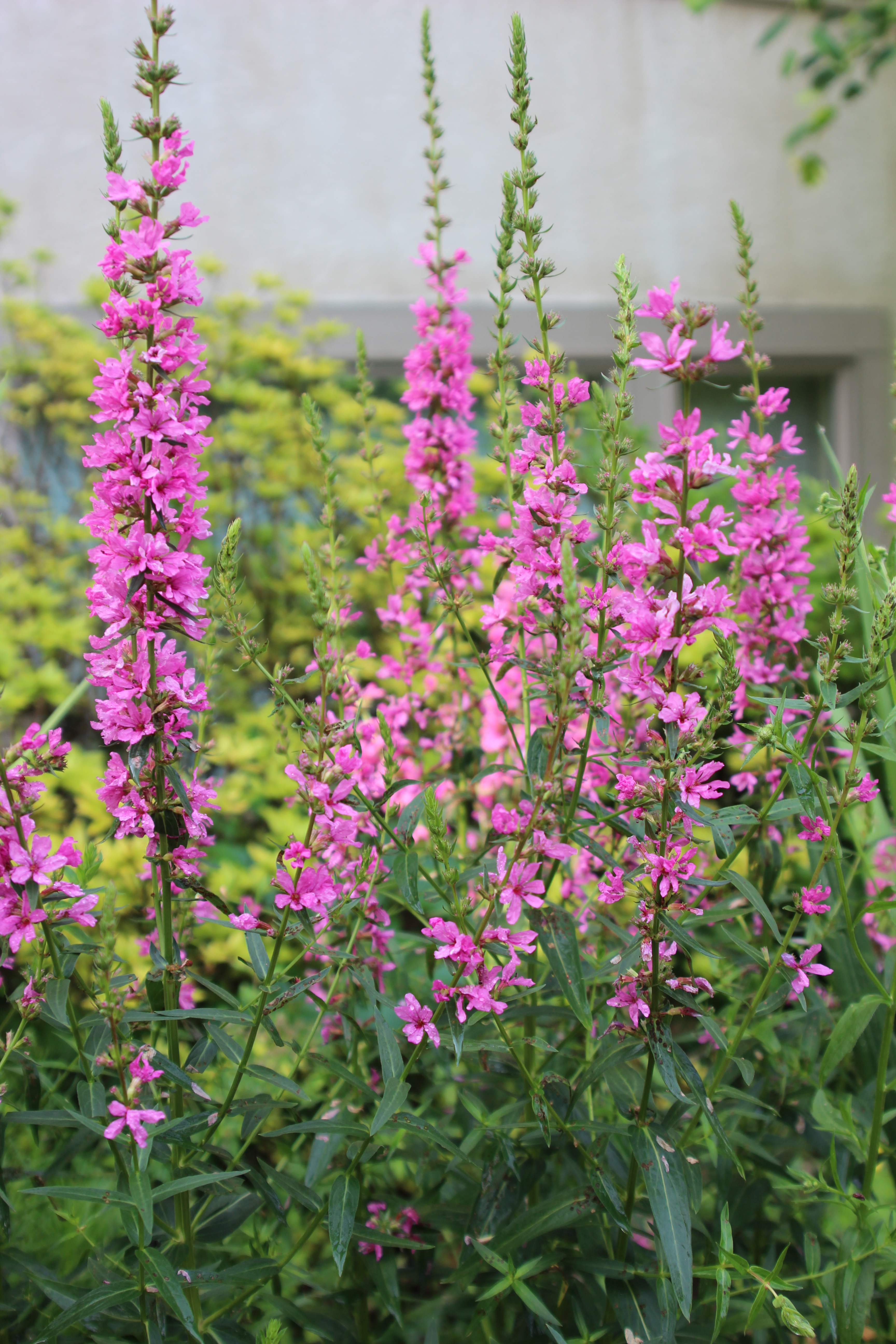Purple loosestrife (Lythrum salicariaand its cultivars and hybrids): This popular magenta-spiked garden flower grows three to seven feet tall and has a dense bushy growth of one to 50 stems. Purple loosestrife spreads aggressively by underground stems (rhizomes) and can produce as many as a million seeds per plant. Supposedly sterile strains of L. virgatum will outcross with this plant and produce seeds.