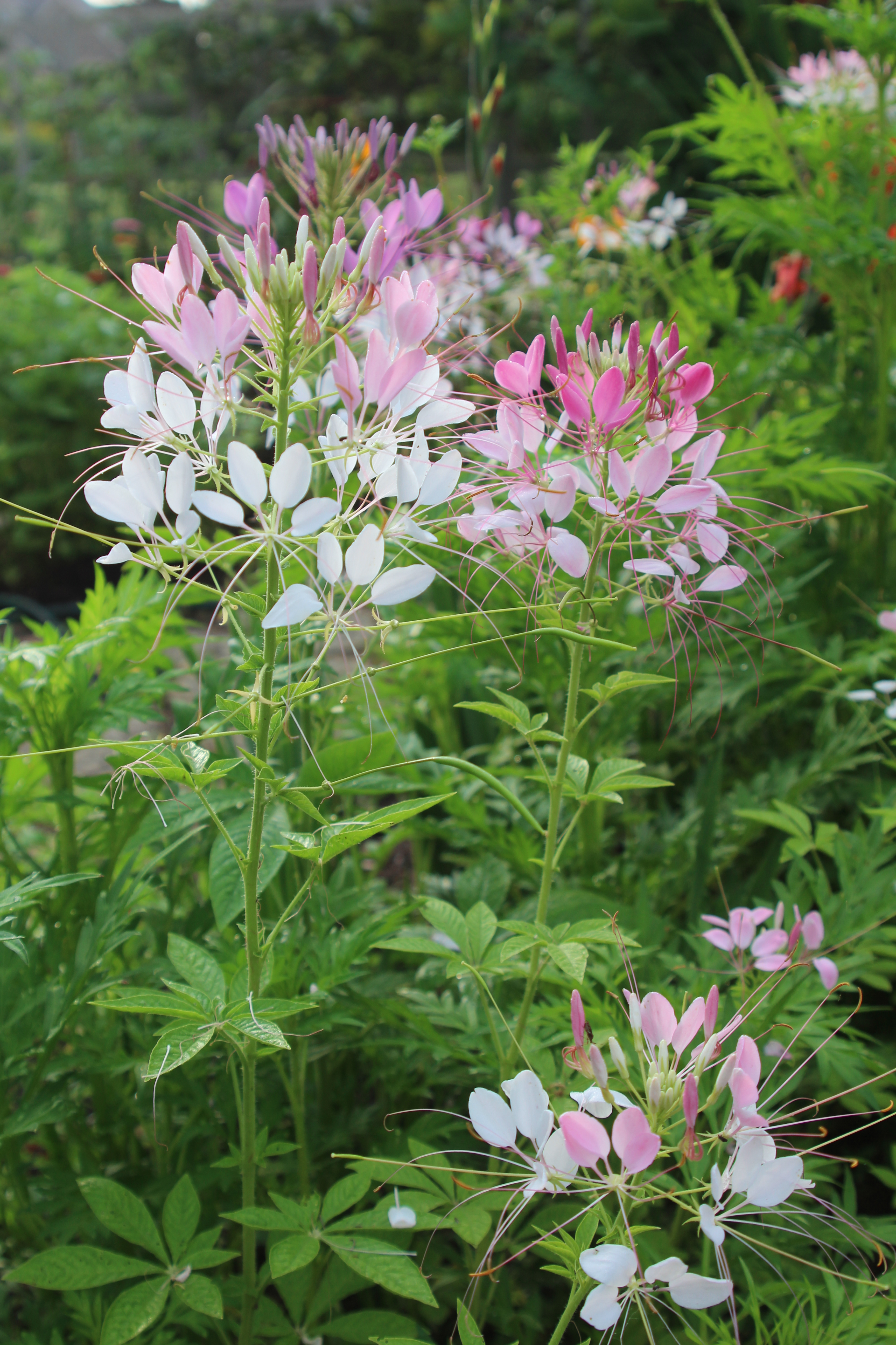 Spider Flower (Cleome): These big spider-shaped blooms are followed by seed pods loaded with lots of seeds. I plant them in a cutting garden but ruthlessly thin the new seedlings.