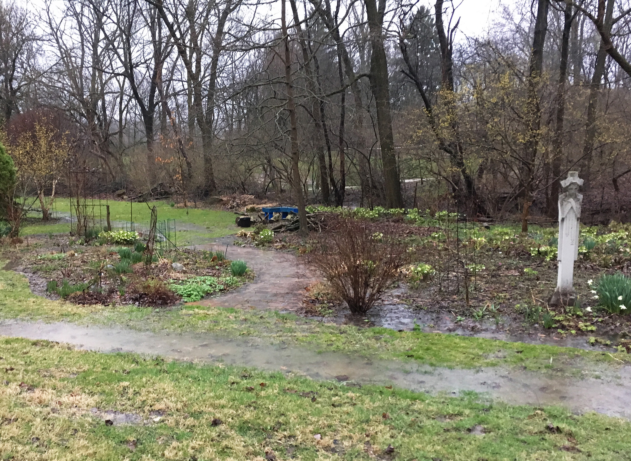 This spring may be different than what we think is the normal* spring, but I do want to remind you that Mother Nature has offered other mercurial springs over time. Last year, we had several “100-year rains.” Most of my plants made it through, but I lost several lavenders, some hens and chicks, and a few sages. The daffodils planted in that swamp were not especially happy and flowered less last year and this year.