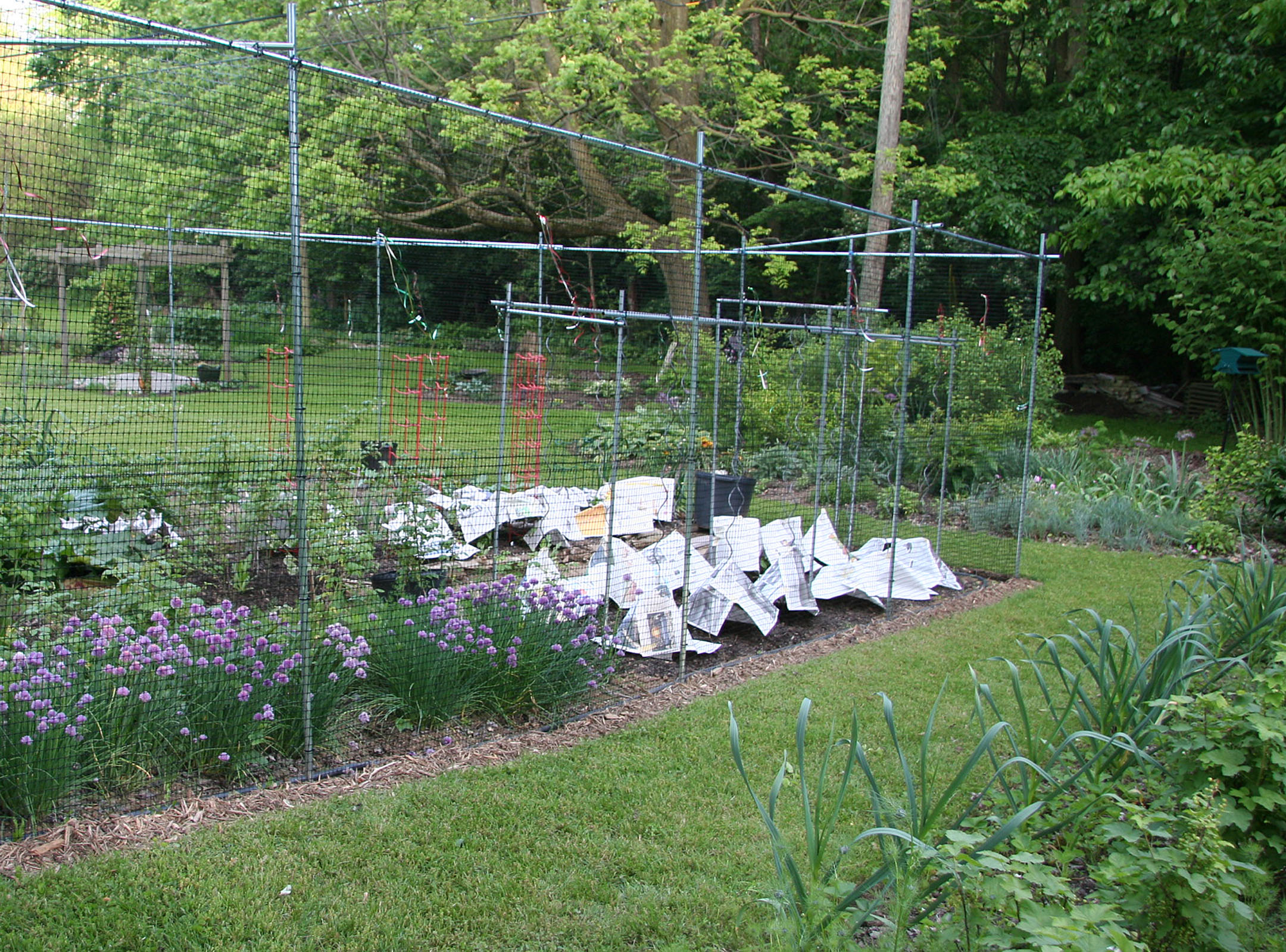In May of 2006, we had low overnight temperatures in the 30s which threatened the tomatoes and chilies in my vegetable gardens. Yes, those are newspaper hats.