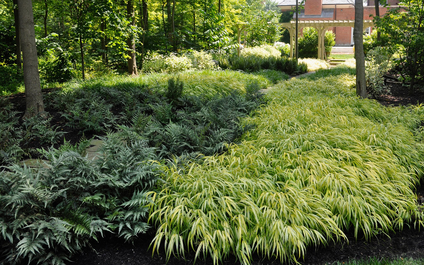 subtle interplay of green, gold, silver and white perennials and shrubs. It was