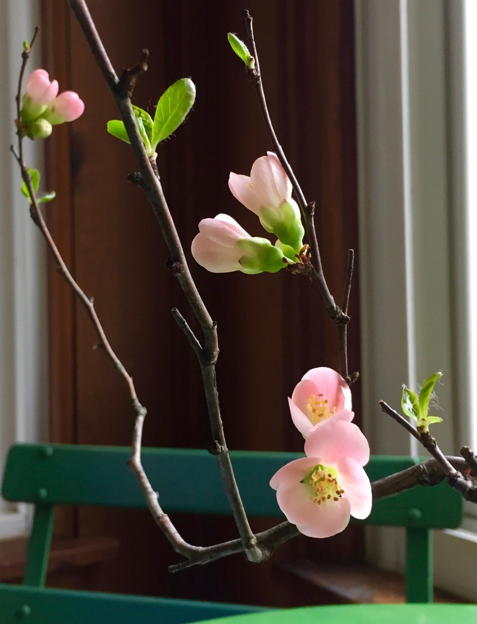 Thenit’s off to the living quarters for the grand opening. Blossoms can last for aweek or so, depending on the type of plant. Star magnolias are the day liliesof woodies, but quince sometimes goes nearly two weeks. Such stems look fine ina container by themselves, or they’ll ad’d an artisan touch to one of thosebargain-priced clusters of florist flowers or pots of forced spring bulbs.