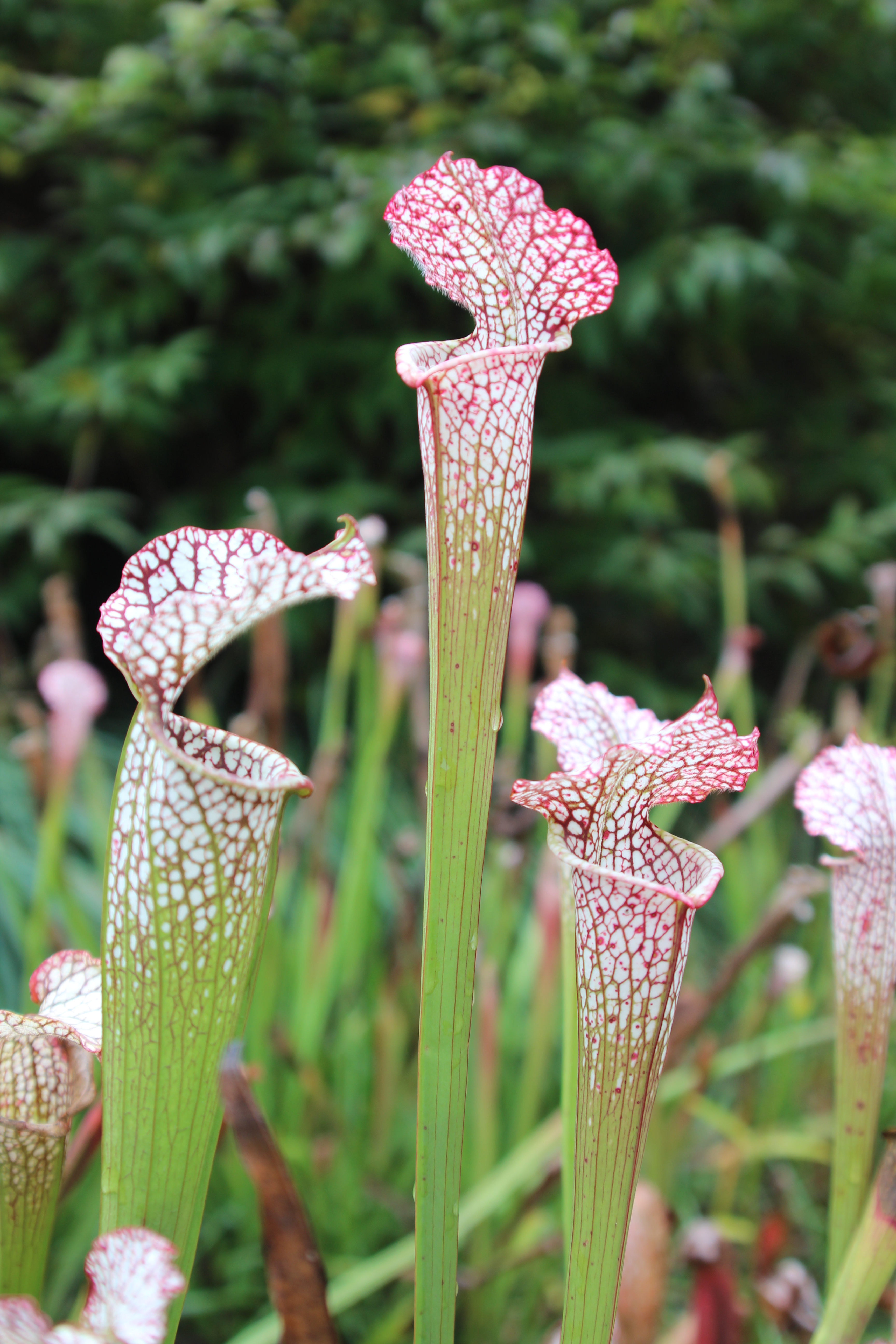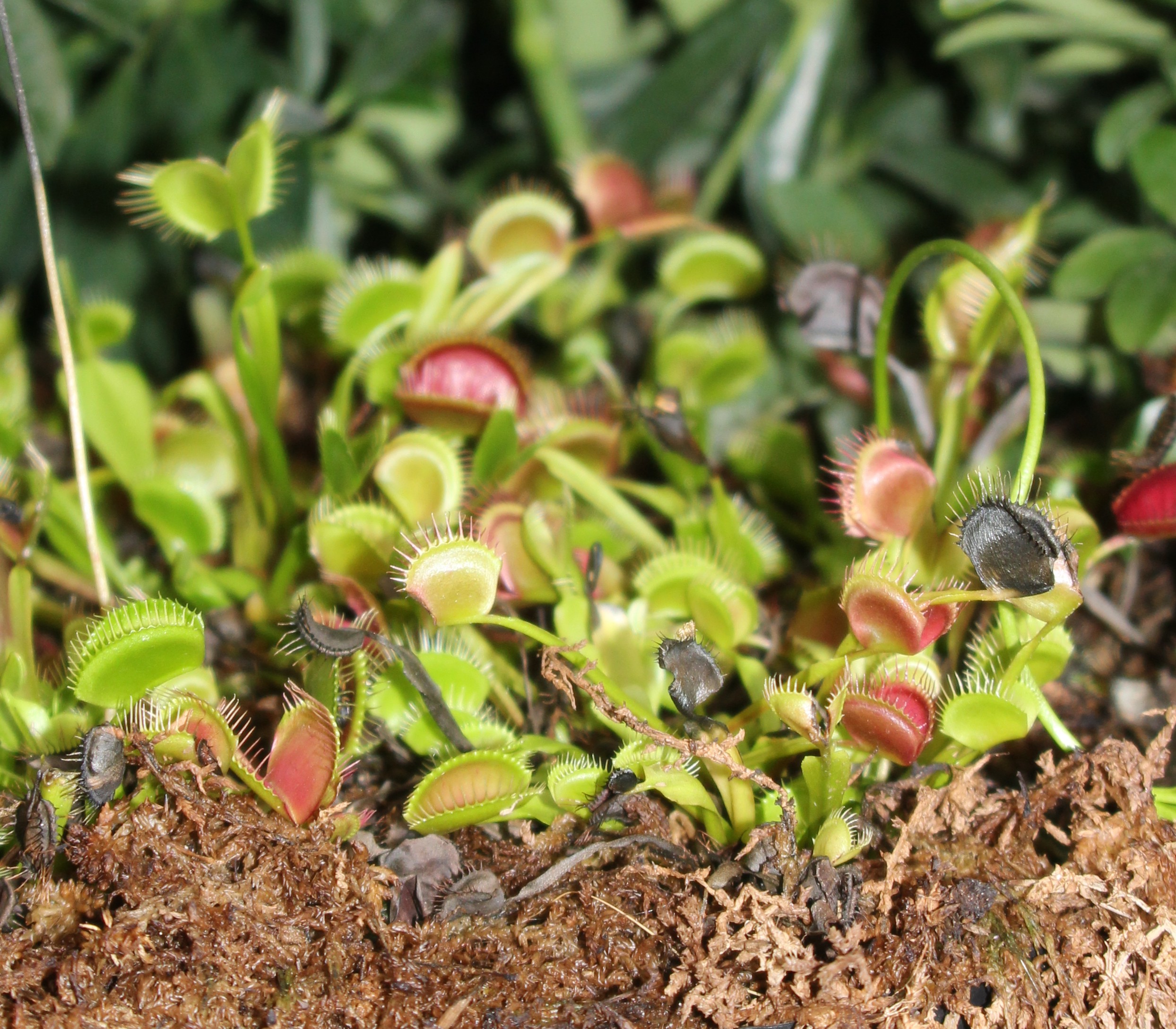 Two flesh-eating favorites starred in the carnivorous plants display. The American pitcher plant (Sarracenia) lures prey inside its trumpet-shaped leaves with an intoxicating nectar.