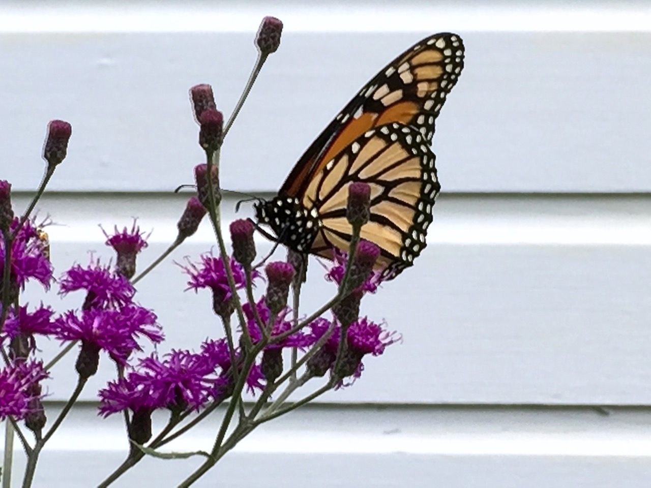 The other evening, nature almost made up for all the ills. As I gazed at the top of the sycamore warmly suffused with the amber sunset, four or five Monarch butterflies fluttered and swooped among the high maple branches. They alit and stayed, apparently roosting for the night. As this amazing fact sank in, I glanced to the tree tops again and spotted the moon, a pearl against the clear blue sky.