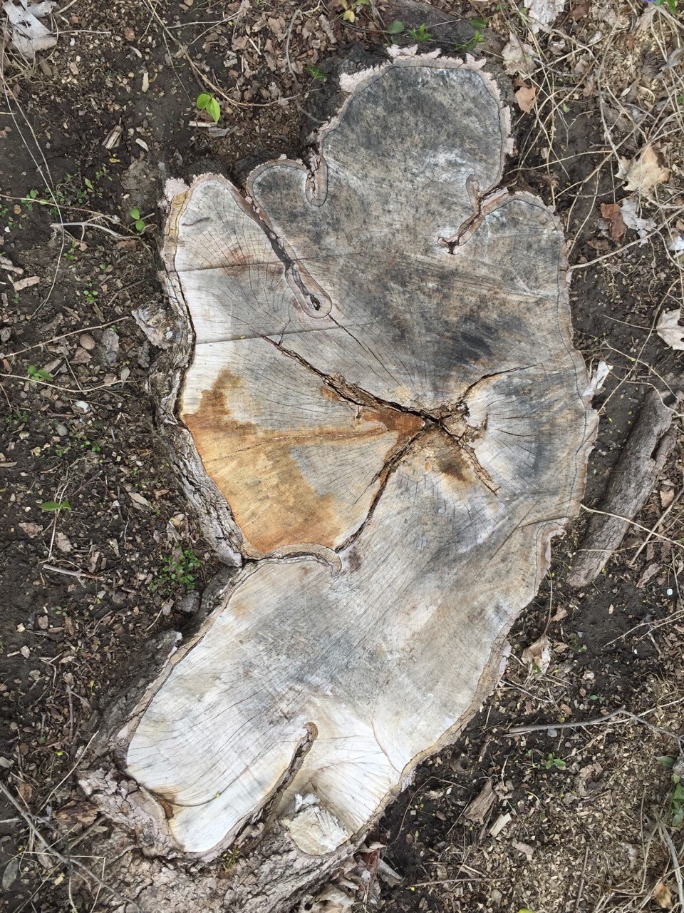 All those years disappeared in three hours. Only scattered sawdust and a smooth, flat shelf of wood at ground level remained. Last fall, the second of the “hospice” maples, as the arborist described them, was cut down. During its last three or four years, this tree displayed ominous signs: little if any new growth, early coloration and leaf loss in fall, and a shower of dead branches and twigs after every wind storm.
