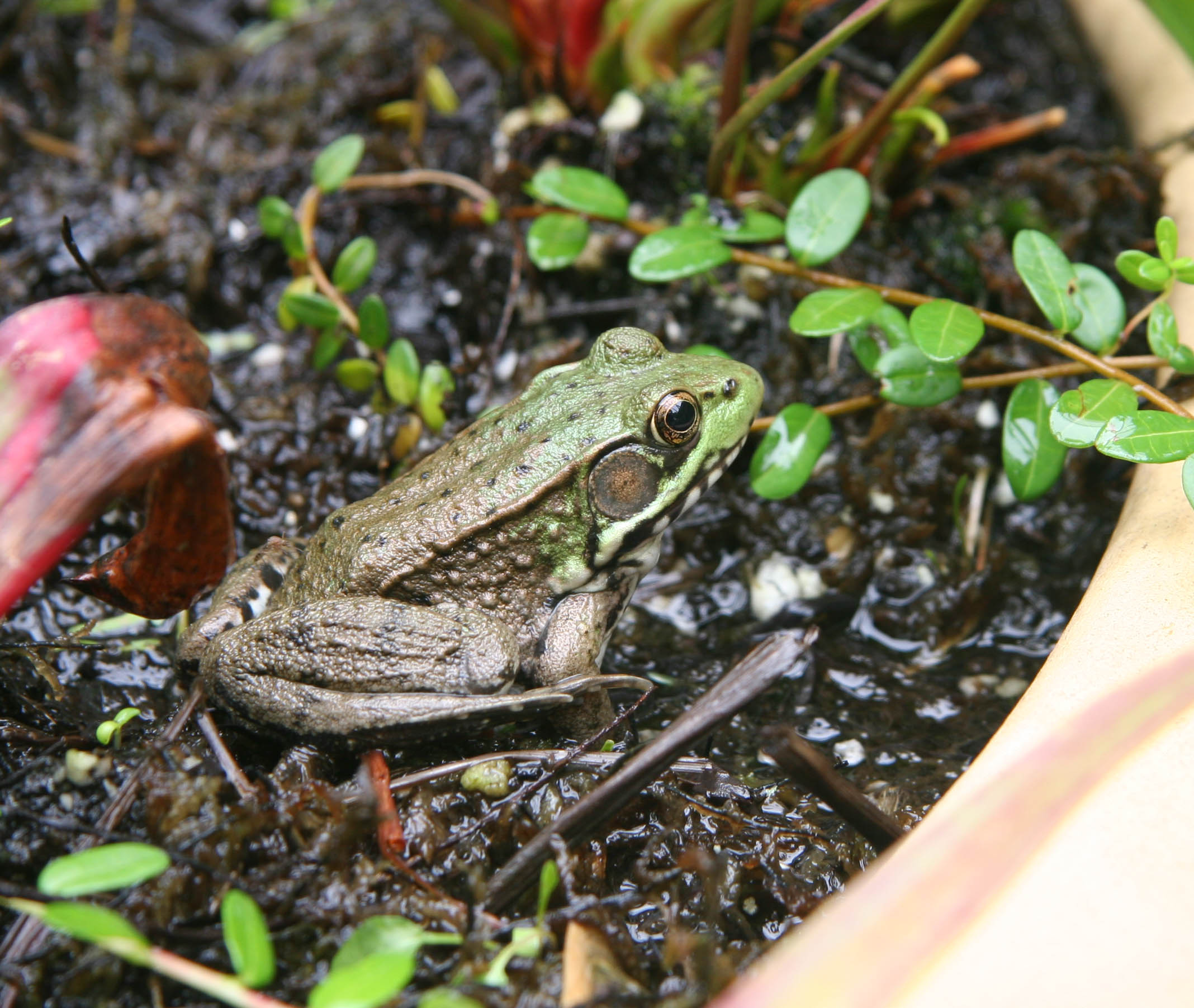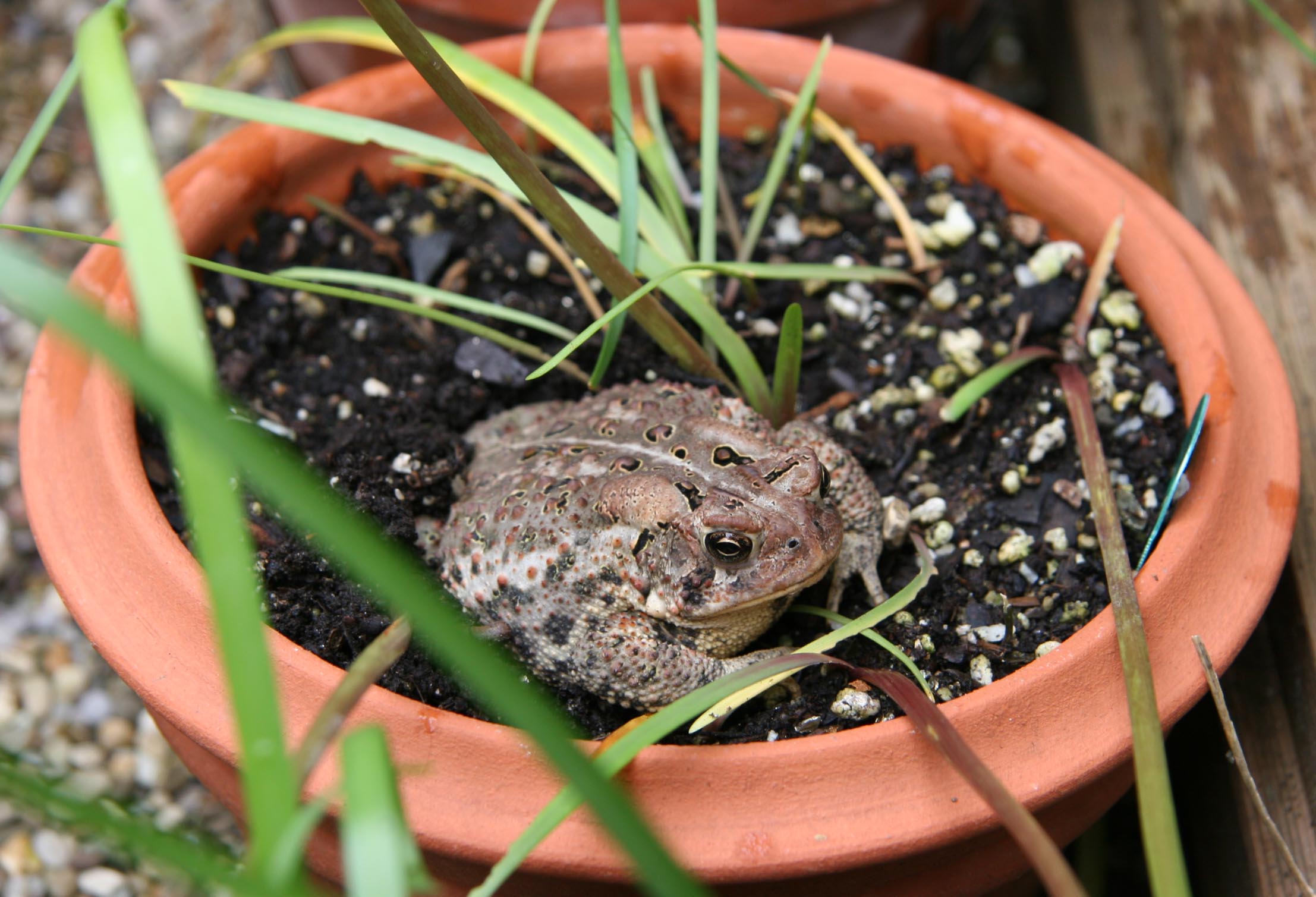 From the frogs and toads: We have enjoyed the moist places you have provided for us in your bog and rain lily pots. The area under the fig tree is nice, too.